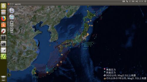 東進・西進の圧力ポイントを識別する地震予測です。 東進・西進どちらも危ないです。 マグネチュード M6.5以上の地震を予測します。 2017年12月4日まで一年間の統計解析結果を示します。 [1,2] 拡大してご覧下さい。 赤マークは東に向かう圧力、青…